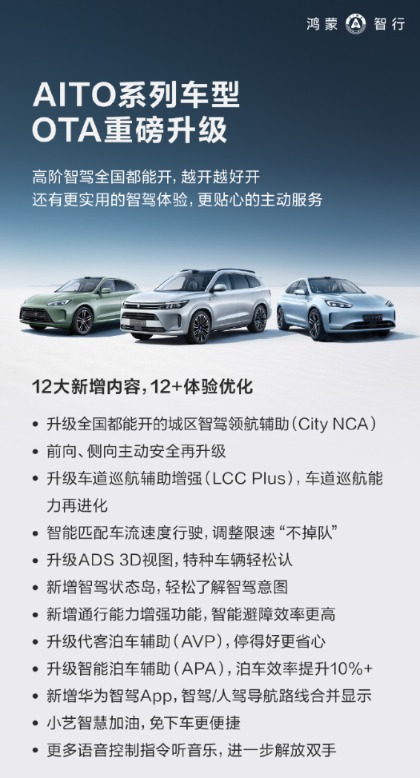 值得注意的是,2月2日,鸿蒙智行微博称AITO系列车型OTA重磅升级,正式在全国范围内推送不依赖高精地图的城区智能辅助驾驶。