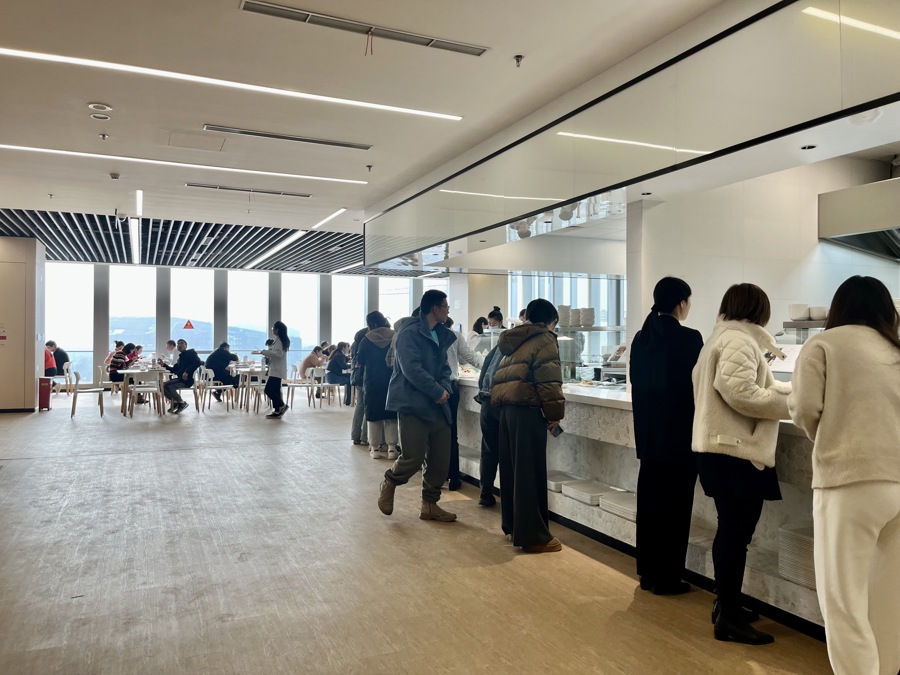 入驻企业多了,座位才紧张。2023年7月底,南大数智中心百米双子塔楼中的A楼率先交付使用,前期进场装修完成的纳斯达克上市企业聪链集团成为首个入驻企业。随后,其他企业相继入驻,一楼大堂也开出了全家便利店和Manner咖啡。